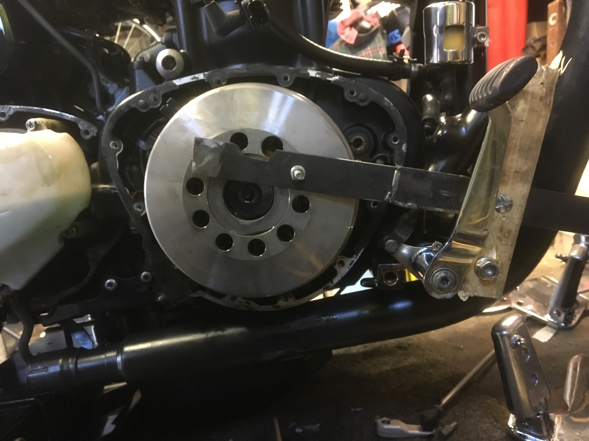 | | Posted : 02 May 2010 - 23:24 Post title : Re: Cam Timing (How To) (Re: Birdy68) | | | i have an update to the cam timing, whilst my dealer was doing another BB install this week i decided to come up with a second method of timing the bike, the reason for this is to get to the timing pin hole you must remove the RH cover which means you loose about 1 litre of oil, then remove the Rotor, to do this you need two Triumph Tool's, you can get away with using an air gun rather than one of the tools to remove the bolt however you must have T3880200 to remove the rotor from the shaft.