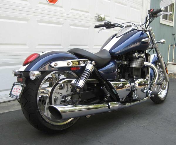| | Posted : 05 May 2010 - 21:16 Post title : Re: Progressive Suspension (Re: fasteddy) | | | Hi Eddy. I can,t understand why they are taking so long??? As I,ve said on here before, I transferred the 440,s from my speedy fitted with the heavier of the two spring options..the lighter springs were fine on the speedy for me..(i weigh approx 170 lbs) I am running with the adjuster wound down to the second line and have lost approx 8mm (5/16") ride height which has been unnoticeable in the bikes performance. The rear suspension has coped perfectly with virtually all kinds of conditions (except ice/snow) if anything they are performing even better than they did on the speedy so it would seem that all they need to do is play with the length and springs...not rocket science... If they are improving their performance I would be absolutely amazed as I honestly can,t find any criticism to level at them. The shocks have done approx 35,000 kms (22.000 miles) and are still performing as new. I must admit that they are expensive (list price of over $1150 aust) but I now feel justified in their purchase... The bike definitely needs front springs to compliment the rears so i,m patiently waiting for these to come on stream. I found the standard rears too hard for me riding 1 up, the rear skipped and bounced around especially at higher speeds on our poor country roads, maybe ok with a passenger but not solo.. Hope this info helps other owners in the decisions of what to purchase/change, cheers all. Tadpole