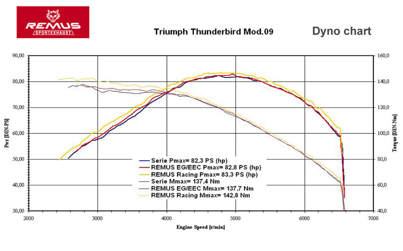 | | Posted : 16 Oct 2009 - 03:23 Post title : Re: REMUS Exhaust System (Re: Birdy68) | | | That dyno is so typical of how detuned the triumph classics and cruisers lines are. they all lose breath and die a few thousand RPM's before redline.. They need unrestricted pipes and airway mods. It's the airway mods that do it along with enrichening the mix to match, and the pipes are just needed to allow the larger exhaust flow. My speedmaster was pathetic at higher rpm's. Just a joke. Opened up the air box in a big way with thunderbike pipes and rejetted it, added some ignition mods that helped a bit too. at that point it pulled so hard in freeway roll-ons my Tbird isn't much better ! It probably got 50% better if not more. yet the bottom end stayed almost the same. Better, but no where near as much because like the Tbird it's already good there.