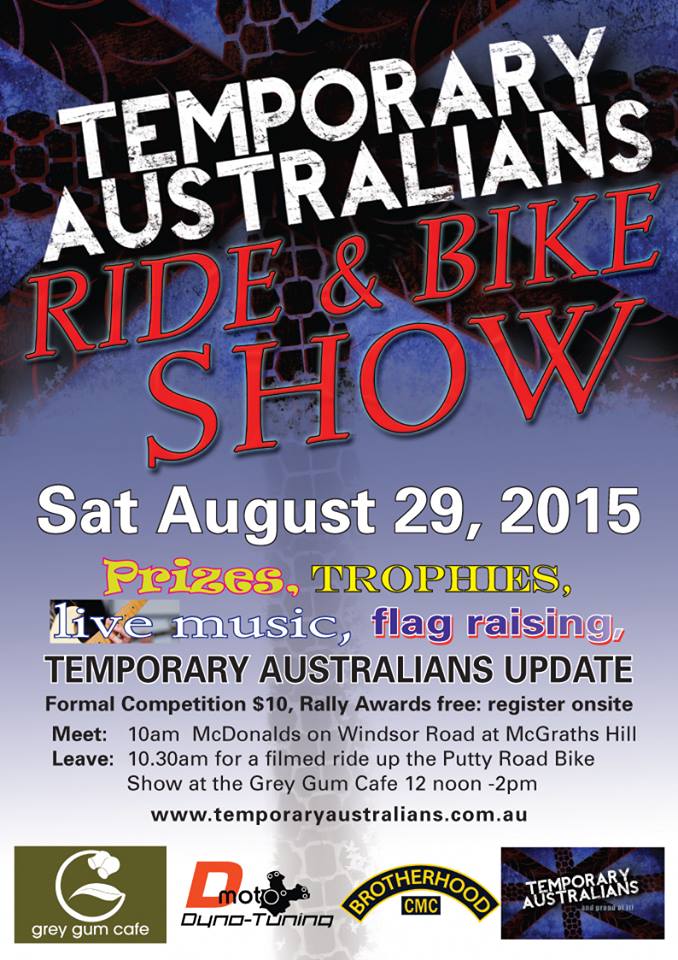 | | Posted : 17 Aug 2015 - 07:50 Post title : Re: West Sydney Short Ride/Lunch Sunday 23rd August (Re: Smitty) | |