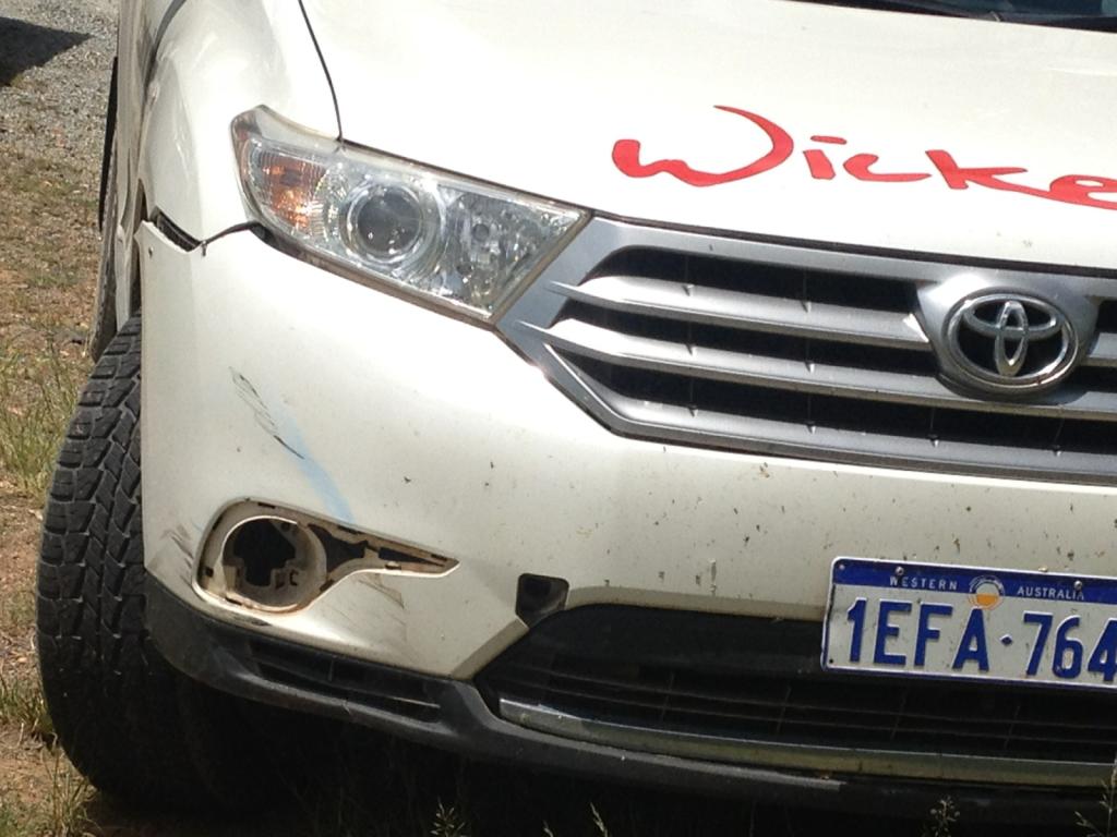 The Bitumen verge can be seen where the Offending car was parked. Thats where I ended up down the road around the corner at the end of it. the Backpackers on the RHS of the picture wonder "Ah Fuck what do we do now?" The Offending Vehicle, Backpackers & Wicked Campers" Errrrrrrrrrrag, Loosened the front Bumper and Removed their Fog Light, The Blue is from the "Kevlar Jeans" and the black is from My Alpinestar Boots. The Latest Fashion Accessory, NOW GONE. Thank F%*k.