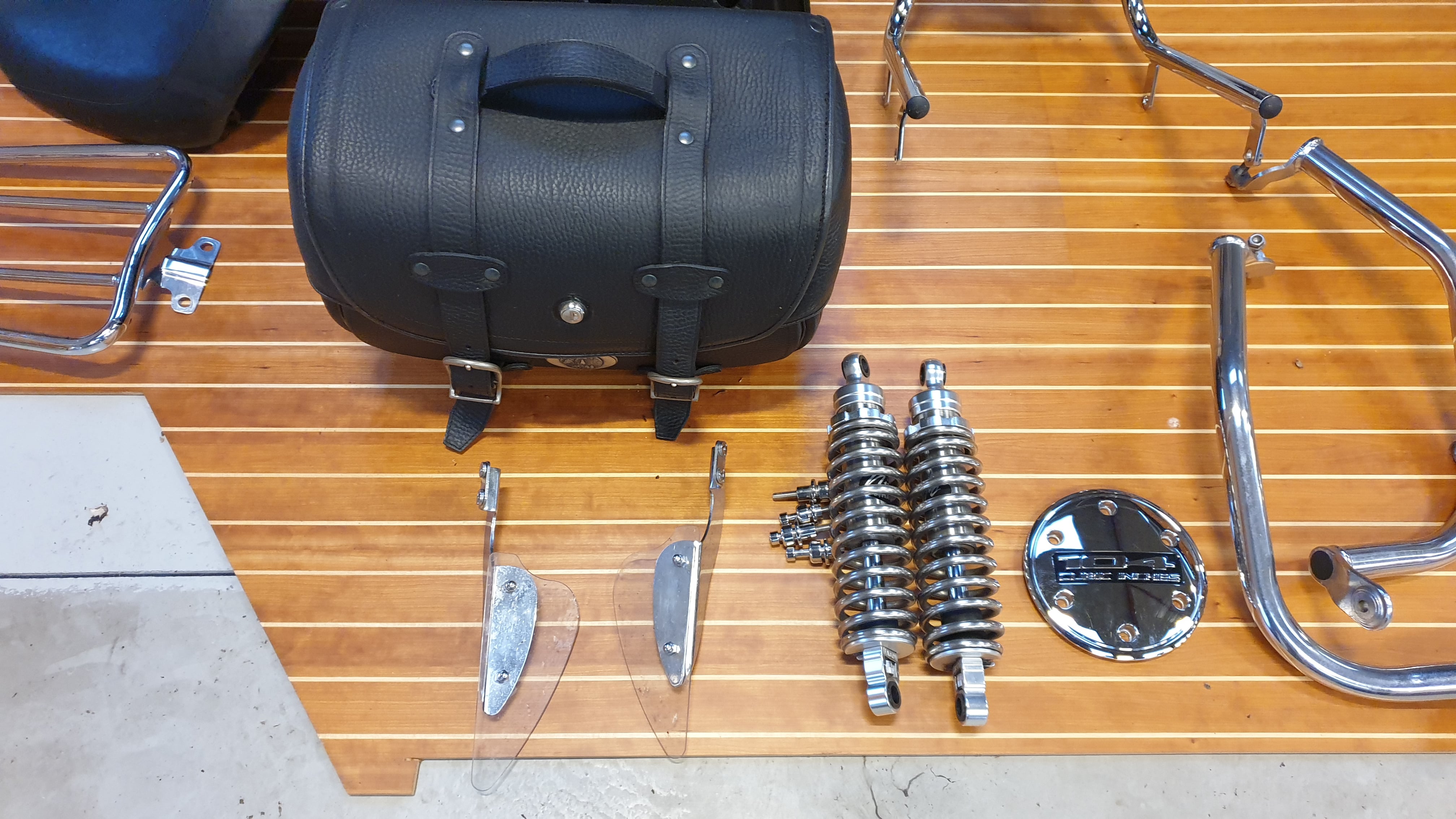 T-Bars (Triumph OEM) Saddlebags (Pref hard cases, will consider leather) Solo seat BC airbag delete (don't want to pay new prices!) TOR exhausts Rider and passenger floorboards.