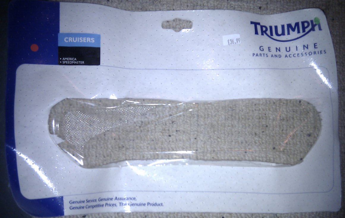 got home and looked up the package i got them in, no part number!! it is genuine triumph kit had a look online and couldnt locate a number. i got them at triumph in birmingham but thats not much help other than they are triumph stock. have seen them at my dealers so if they are still there could get a reference for ya.