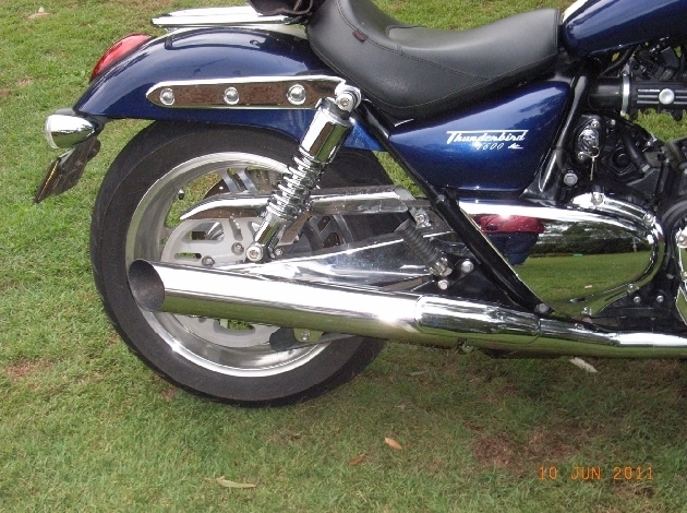 | Experience is something you get just after you needed it 1600,Foran Razorbacks, Meerkat bypass, Dyno tune, real headlight,plenty of chrome,switchblade pegs, Nitron R3 shocks & Ikon progressive fork springs etc. Scorpion Western Low handlebars. PH adjustable fork caps.