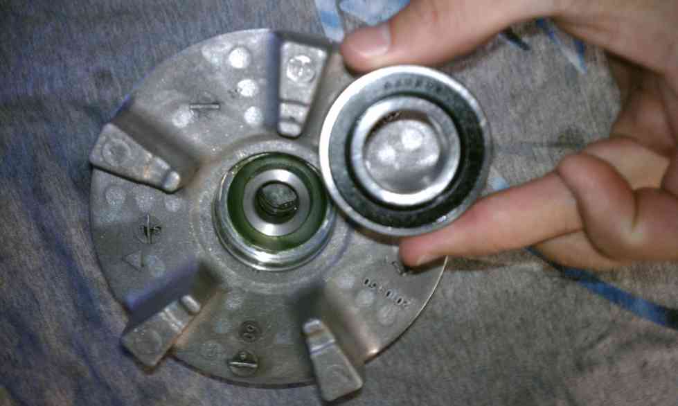 Cush drive side bearing installed. Notice the spacer just below the bearing.