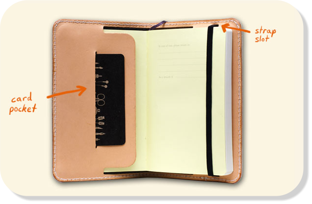 It's got a nice place for a badge or what not, if we wanted a book and a 'thing' and wanted to keep it still transportable. Of course the pocket could also be for a sticker, patch or some other thing that might be a 'gift' for the next journal keeper.... say I go to the Stelvio pass, take a pic, write my info on the journal and pick up a patch and slip it into the book and send it on. Next guy get's the book, keeps the patch and takes his own pic and momento...