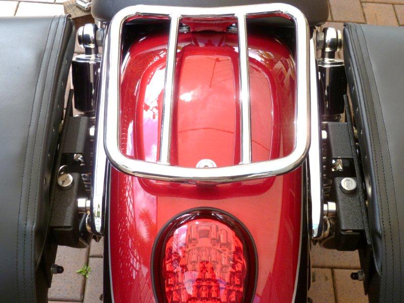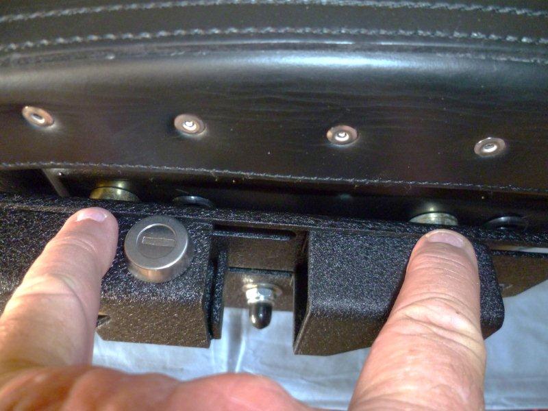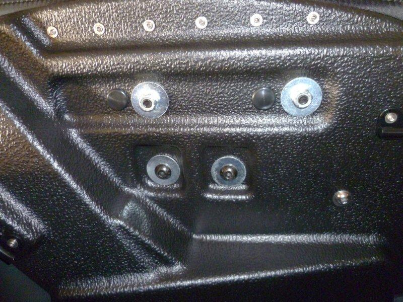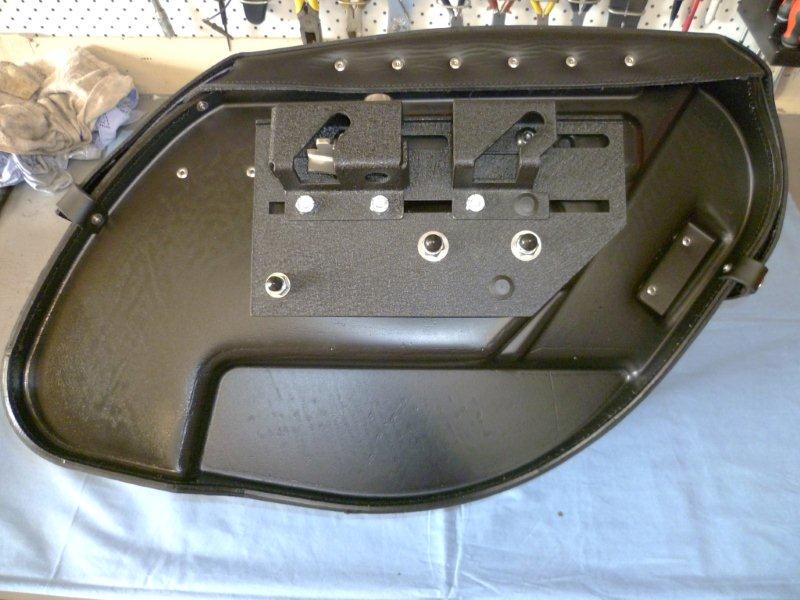 The end result is practically the same except I believe the Ghost/Edge Brackets give you a bit more ability to adjust the position of the bags on the bike as there are 2 top mounts that can individually slide forwards and backwards on the main bag mount. This picture depicts the view from the rear and the bags are nowhere near the Shorties. This picture depicts the top view showing the clearences and ease of removal. This picture depicts the Ghost or Edge brackets and also shows the 2 x Individual Sliding mounts that allow more adjustment than the easy brackets. This pictrue depicts 2 x Cad Plated spacers used to space the bag out from the bracket so that the bag hangs more vertically on the brackets. This pictrue depicts the inside view of the bags and the utilisation and plugging of the OEM bolt holes. This picture depicts the finished job "Side View"