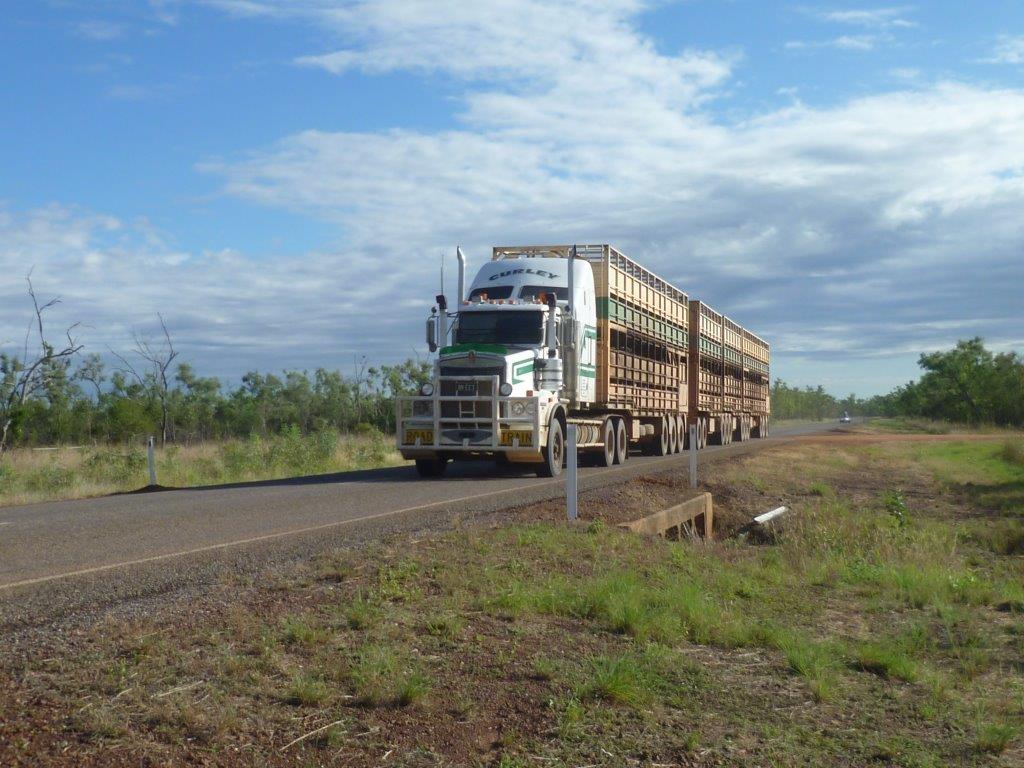 Those Pesky Road Trains. 300+ head of cattle per road train.