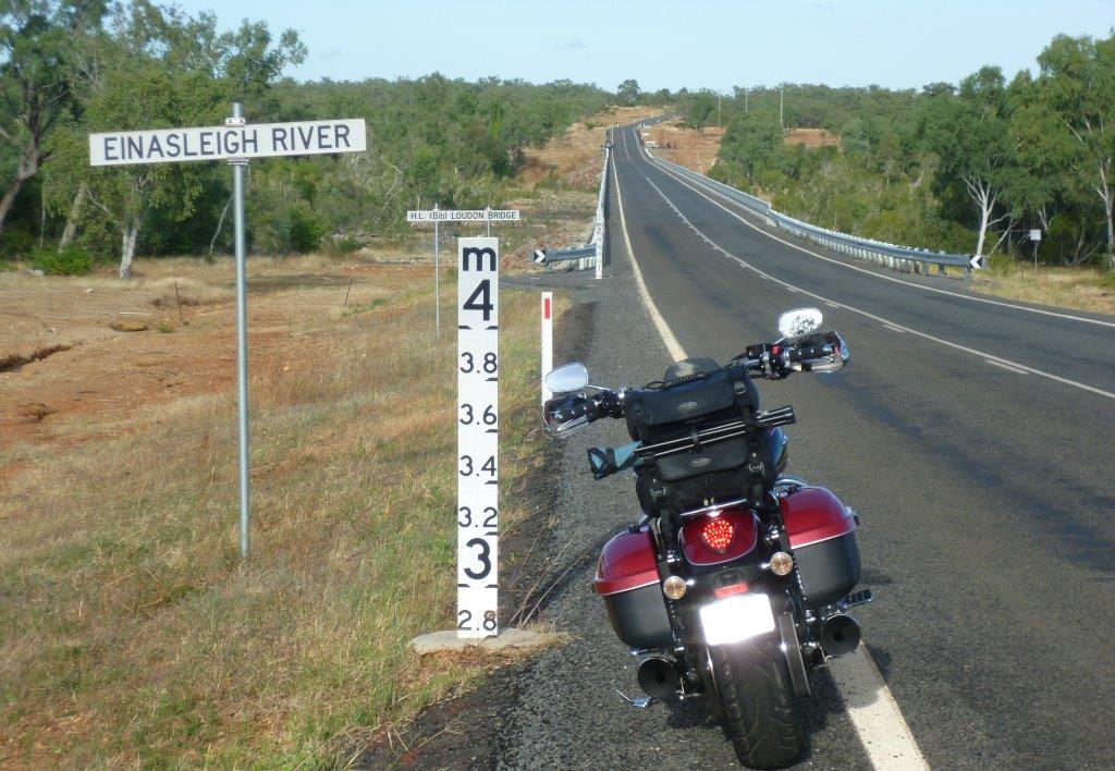 More of those "Pesky Road trains" this one loaded with Unleaded Petrol. On our arrival we booked into Gannon's Hotel Motel for the night and once again it was a good choice with the ability to be able to secure the bikes, have a few drinks, and a meal and a sleep all in the one location proved acceptable. Day8:Saturday May18th: Julia Creek to Charters Towers 513Klms On the road again at about 8.30am with our sights set on Charters Towers,We had a couple of leg stretches along the way and refuelled in Hughenden and had lunch out of the trailer on the banks of the Flinders River in Hughenden.