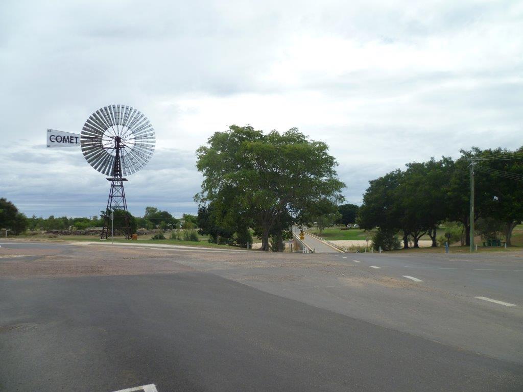 Lunch break on the Flinders River in Hugenden, Note:the size of the windmill. that's pretty normal for Queensland everything is Fn Big up here..