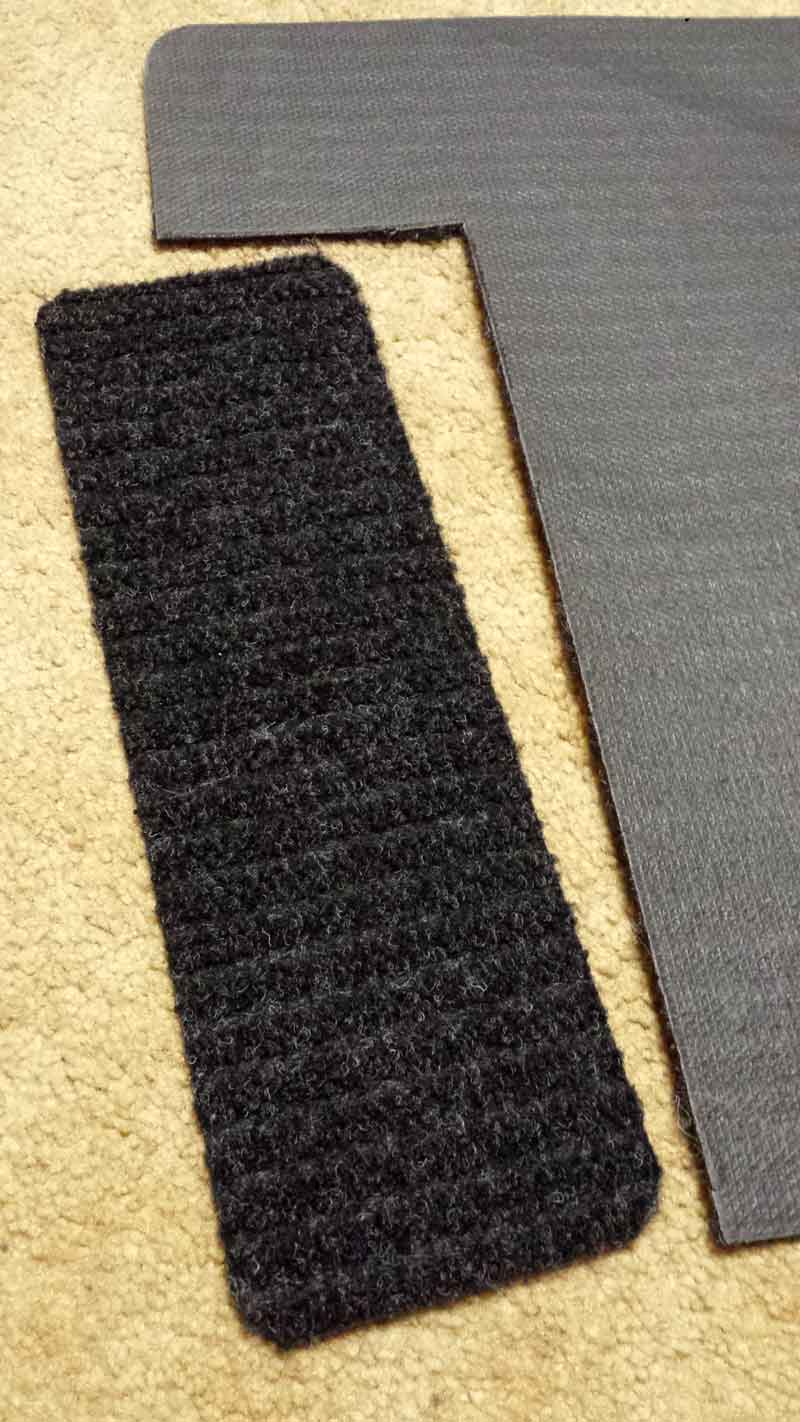 I mentioned that the flat surface is finished in a glossy enamel, making it slick. I purchased a thin but very tough Blue Hawk floor mat at my local home center for $9, traced the jack surface on it and cut a pad out of it, then gave the textile side of it a light spray of PlastiDip to make it non-slip and glued it on the top surface of the jack with contact adhesive. Saddles still fit, problem solved.