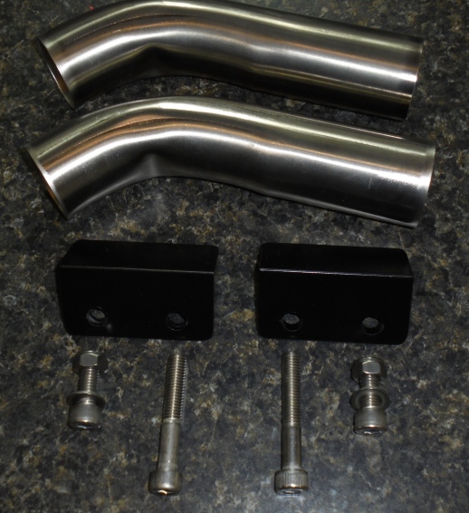 Kits available now including elbows, brackets and SS hardware. $65 shipped in USA; $75 Can, $82 Europe/Aus. If you've previously bought JBQ elbows and want to cut them to fit, $40 credit. BTW, you'll need to source the mufflers. This is the adapter kit only.