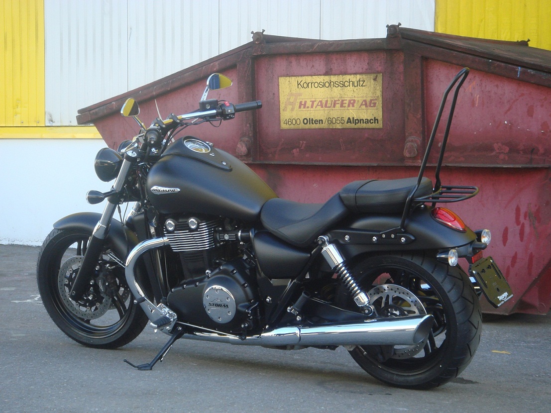 erne's interpretation of the Storm isn't that bad, the pipes are very nice. We all know - A bikers work is never finished... We'll see. Anyhow, flat black is fasterrrrrr..... and it looks awsome...