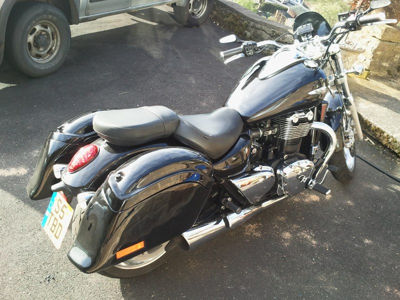 | "My fault, my failure, is not in the passions I have, but in my lack of control of them." Jack Kerouac Black T'bird 1700, LH rider and passenger seats, front and rear dresser bars, light bar, roadster screen, passenger footboards, QR sissy bar and rack, LH backrest, bags, longs TORs, high flow air filter.... for now
