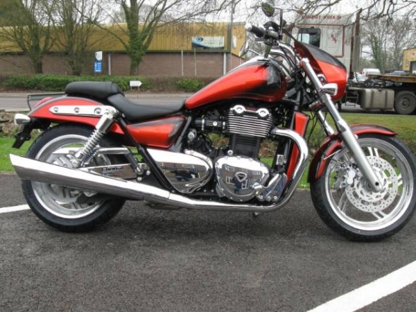 TRIUMPH THUNDERBIRD 1600ABS CUSTOM 1600cc, Manual 5 speed, 2011 11 Reg , Orange. We took a Thunderbird ABS and sent all the bodywork to Dream Machine and this was the result stunning ! We even had the rad cover and headlight cowl done. Then we fitted it with Triumphs own pullback T bars, chrome switchgear, chrome swinging arm covers and took a step back before saying WOW ! They say in life you get what you pay for and with this Thunderbird ABS we think the same applies ! Since the pictures were taken the bike has had its tank badges fitted.. £11,999 p/x welcome