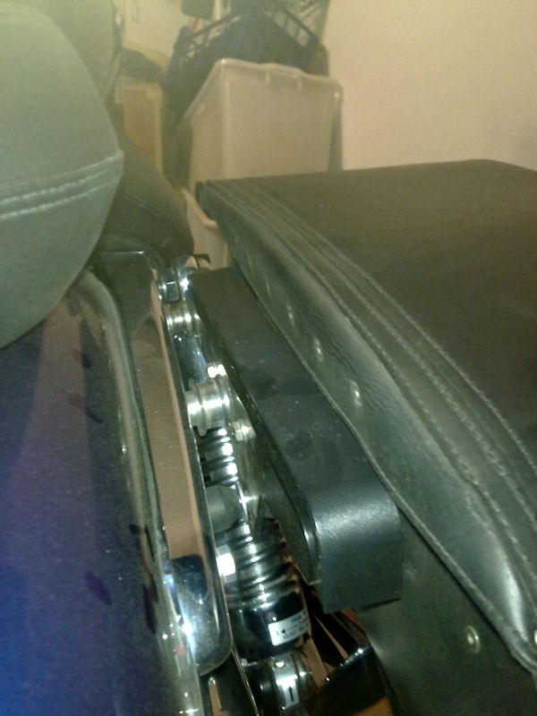 [IMG] The concave recesses on the back stick out and the cut away for the springs is probably going to be in the way. I don't think this is a simple drill some holes and bolt it on job. I'm going to need at least some sort of spacer to bring the holes that miss the raised part on the bags level, if not make up a bracket if I can't get them positioned properly.