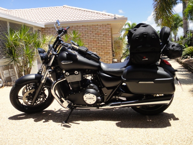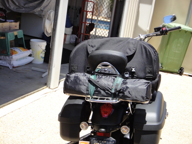 | | Posted : 17 Feb 2012 - 08:18 Post title : Re: Luggage options for Tbird Storm (Re: Thatch) | | | Thanks for all the info and pics to help my decision. Thought I'd share a few photo's myself to show how I'll be setup for travelling Australia. As you can see I had one small issue of the side bags sitting on my hard panniers which (hopefully) i've solved by slotting my sleeping bag between the backseat and the bottom of the bag.
