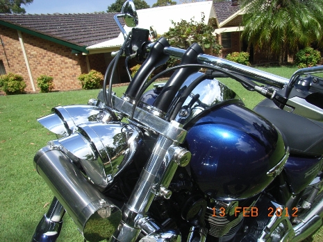 | Experience is something you get just after you needed it 1600,Foran Razorbacks, Meerkat bypass, Dyno tune, real headlight,plenty of chrome,switchblade pegs, Nitron R3 shocks & Ikon progressive fork springs etc. Scorpion Western Low handlebars. PH adjustable fork caps.