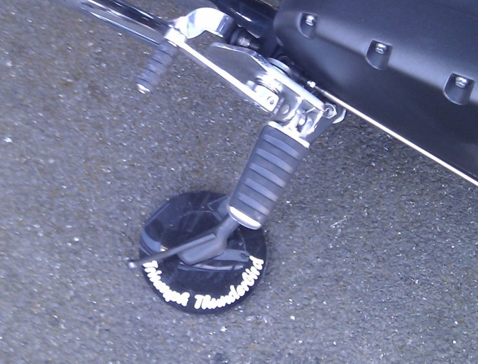 | | Posted : 22 Mar 2012 - 23:13 Post title : Side Stand Support | | | Summer heat is upon us and the asphalt parking lot I have to park in can get beyond hot. Last year my side stand on my Vulcan sunk a full inch in the stuff. Then I got a square plastic puck from my insurance company to put under the stand foot. Worked well but was quite ugly and was severely distorted by the end of the summer. I've been through this forum quite a bit and haven't heard of anyone using or mentioning using them. Anyone got suggestions where I might find one worthy of putting under my T-Bird side stand foot? I know about beer cans, electrical box top covers and other homemade devices as well as those that cost $40 bucks. (good grief, $40 bucks!) I"m looking for a decent one. Possibly aluminum, maybe even an oval one with the Thunderbird logo. How cool would that be?