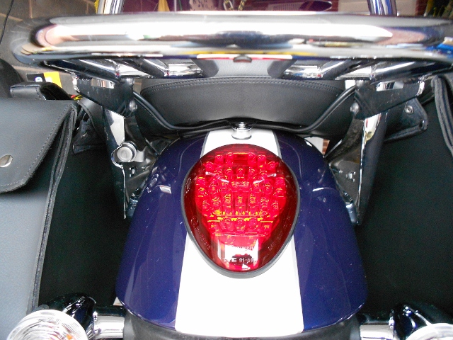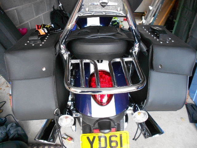 | | Posted : 25 Apr 2012 - 10:37 Post title : Re: Throw over panniers over or under seat? (Re: lionel) | | | I went with option 2. I did notice that this meant that the offside pannier touched the chrome belt guard and put some making tape on. However, it still marked the chrome (tape was fine, boy that chrome must be thin). Having now had an endorsement from Brad regarding the Airhawk seat pad next time I'm going with the over seat option, with the pad on top of the strap.