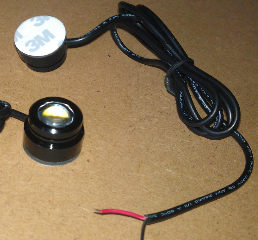 The lights are LED, rated at 3 watts so they are really bright yet tiny...
