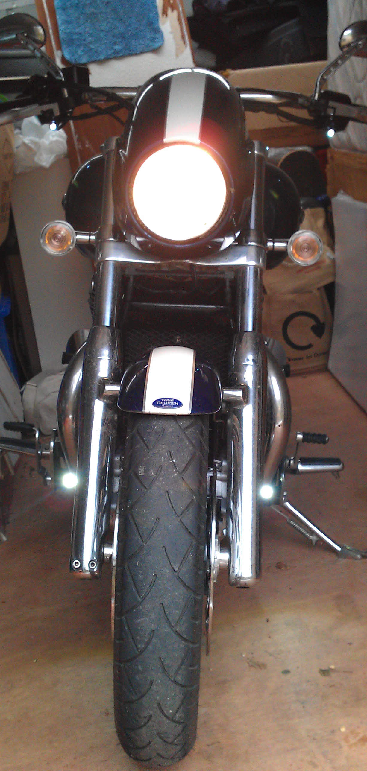 | | Posted : 29 Apr 2012 - 20:07 Post title : Re: Fork mounted driving lights (Re: Swagger) | | | The trouble with mounting lights on the forks is they take road shock along with the shocks which is what they're supposed to do.And guess what happens to the bulbs after a few good bumps? Dave!!!
