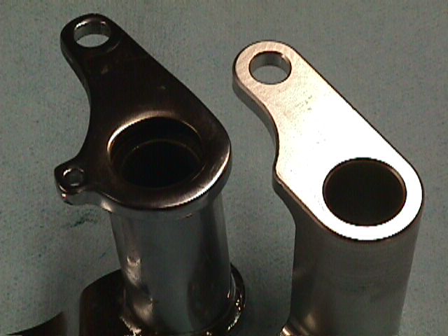 I took off the left (gear shift) side and reused the turnbuckle end connected to the gear change actuator arm. The left side went on quite easily with the footpeg now 4-1/2 in (115mm) back of the OEM position.