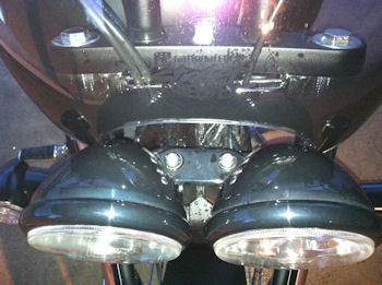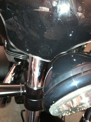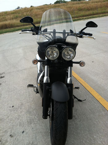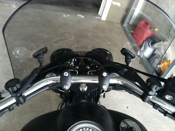 I mounted it really close & had to dremel the lower mount bars so they wouldn't hit the tank when turning, then painted the ends. Then i marked where the double headlights touched the single shaped bottom & dremeled it a little larger to keep the windscreen as low & sleek as possible It really takes the pressure off when freeway riding, and hits me just at the top of the head (I'm 5'11") with the screen mounted low. Quieter & cleaner as it keeps the bugs off too!