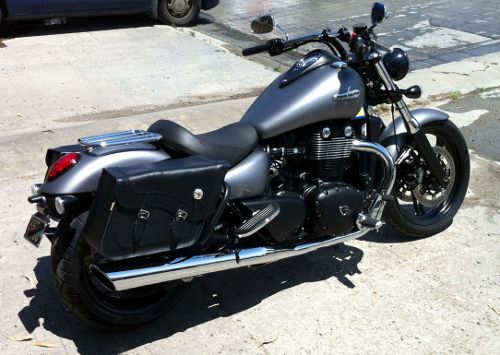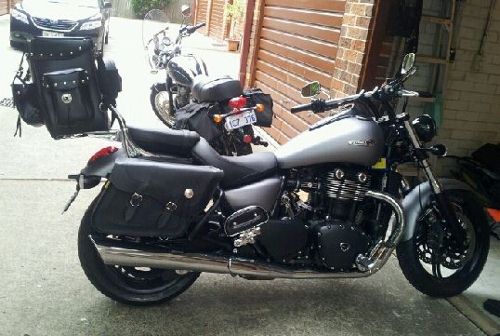 With respect to the K-Drive bags. I have a set of K-Drive bags from my Triumph Speedmaster which I fitted to my Thunderbird with the use of two 290mm x 25mm x 5mm stainless steel bar and 4 x bolts. I used the original mounting brackets for the Speedmaster. The bags are still detachable as before, and I also have the Quick Release Sissy Bar, Luggage Rack Chrome, and Longhaul Pad.