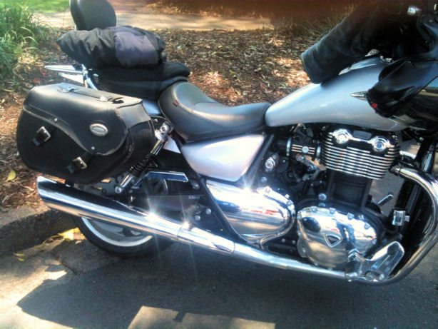 Link I use 'bog standard' Triumph bags and combinations of Iron Rider or Kuryakan ??, or ventura bags, slid over the top of the standard Triumph sissy bar.