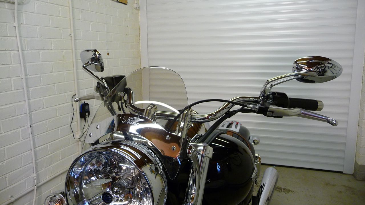 | Mods: Chrome wheels, chrome forks, chrome water manifold, chrome switch blocks, front axle covers, Speedmaster tank badges, chrome pulley, chrome swing arm covers, chrome lower belt guide, chrome upper and lower fork yokes, deuce risers, kuryakan iso grips, chrome fork nut and centre bearing caps