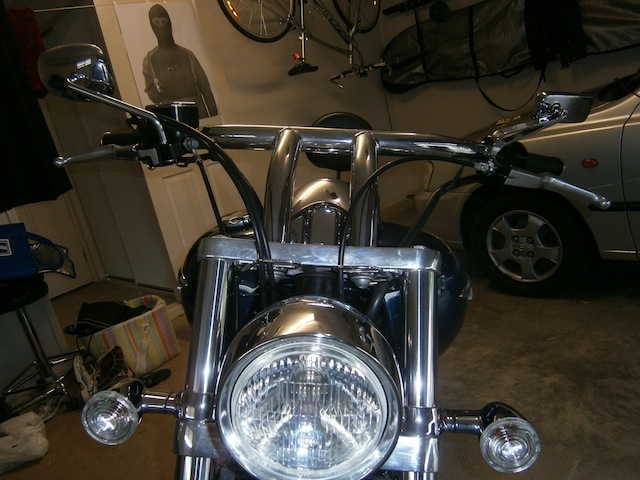 | | Posted : 25 Jul 2013 - 22:57 Post title : Re: Cheap Chrome mirors (Re: Ditch) | | | Damn Ditch that bike is looking fantastic mate. Where did you get that Flyscreen from and does it come with the chrome brackets as fitted to your bike? Also did you manufacture the mirror stem extensions yourself? What is the diameter of the stem section that meets up with the mirror? I have a set of Kuryakyn Sythe mirrors that are pretty cool too but having ridden with them they are just a bit low in the stem in case I need to hit the levers in an emergency because the clearance between mirror and grip is a bit low. Those stem extensions would be ideal in correcting that problem.