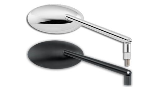 Come in a rectangular and oval shape. The arm allows you to sit lower profile which also gives you more reach and the mirror heads aid in get you out around your shoulder.