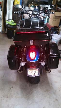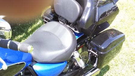 | | Posted : 22 Jul 2013 - 12:00 Post title : Re: solo backrest (Re: Habuba) | | | The trunk and bags are from RideBikeGear.com and I think they are the same as many other sites, however, they are rather thin ABS plastic and the weatherstripping is virtually useless. I spent two hours removing the adhesive residue with GooGone after the stripping came off. I actually replaced it with an LED strip lighting that I sell in my business that is encompassed in a rectangular silicone tube approx 3/16" x 1/2" which I glued on with silicone adhesive. I have to pull the lid out to clear the strip when I close it but there is room for it and it now seals very well. (plus it lights up) They say it will mount to any luggage rack with there hardware and that may be true, however, in order to bolt the rack to the bike you have to install the trunk afterwards which is not feasible so I bought four chrome straps with the rubber grommets and mounted them to the rack; threads up then just drilled more holes in the bottom of the trunk and secured it with fender washers and wingnuts so I could remove it easily.