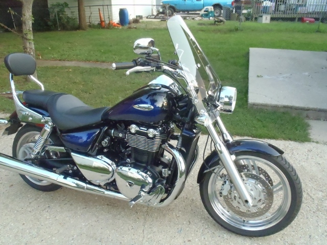 | | Posted : 08 Sep 2013 - 23:44 Post title : Windshield alternative. Memphis Shades | | | Hello just wanted to let everyone know that even though Memphis Shades does not list a windshield for our beloved Thunderbird they do have a quick release windshield that fits our bike perfectly. I installed the Trigger Lock mount kit #2320-0032 with the BigShot sportshield #MEP5719 on my 2010 PhantomBlue Haze Thunderbird and after taking a trip that totaled 1500 miles can say that it is a huge improvement over the Triumph Mid Screen that I had before. I purchased the kit on Ebay through OEMCYCLE for 229.54 with free shipping!