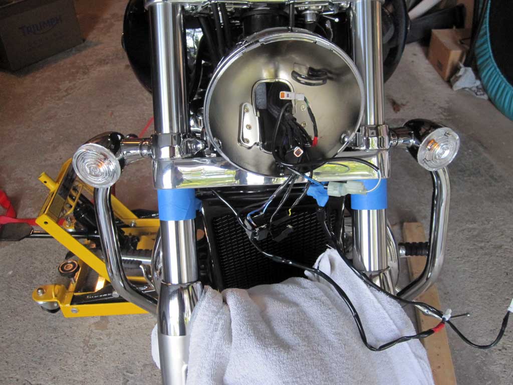 I found two pretty big problems with the kit (and have emailed Triumph Support about them): 1) After opening the auxiliary lamps to wire in the harness, I found that only the harness end connections were insulated. The crimps on the lamp side were exposed and will short against the metal lamp bowl (or eachother) for sure. Very dangerous. I'm assuming the supplier of these lamps accidentally left the insulators off and Triumph QA missed it. I added heat shrink on my connections.