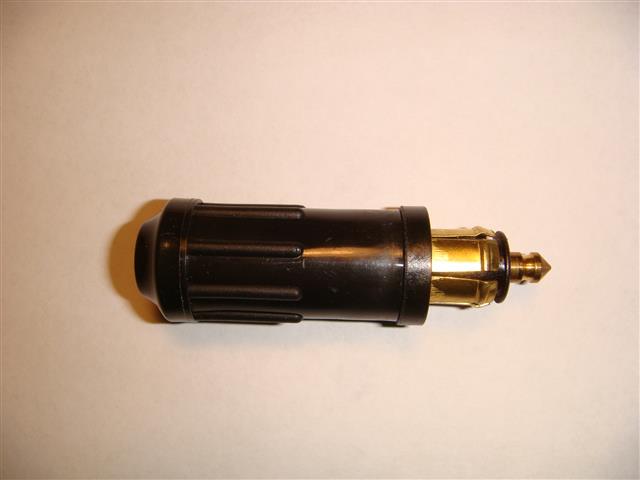 Just an FYI on the Accessory Power Outlet. I purchased the kit thinking it would be nice to have a standard 12V outlet on the bike for plugging in things like a GSP or charging Blue Tooth headsets. I didn't know the Triumph Accessory Power Outlet isn't the standard size used in automobiles. It is smaller and shorter than that use in cars. As it turns out, it's the same size as the power outlets used on BMW R1200RT motorcycles. I happen to still have the power plugs I bought for my previous bike, the BMW R1200RT, and these plugs work just fine in the Triumph power outlet. Maybe this is a motorcycle power outlet standard, don't know? Anyway, here are a couple of pictures of the outlet and plug;