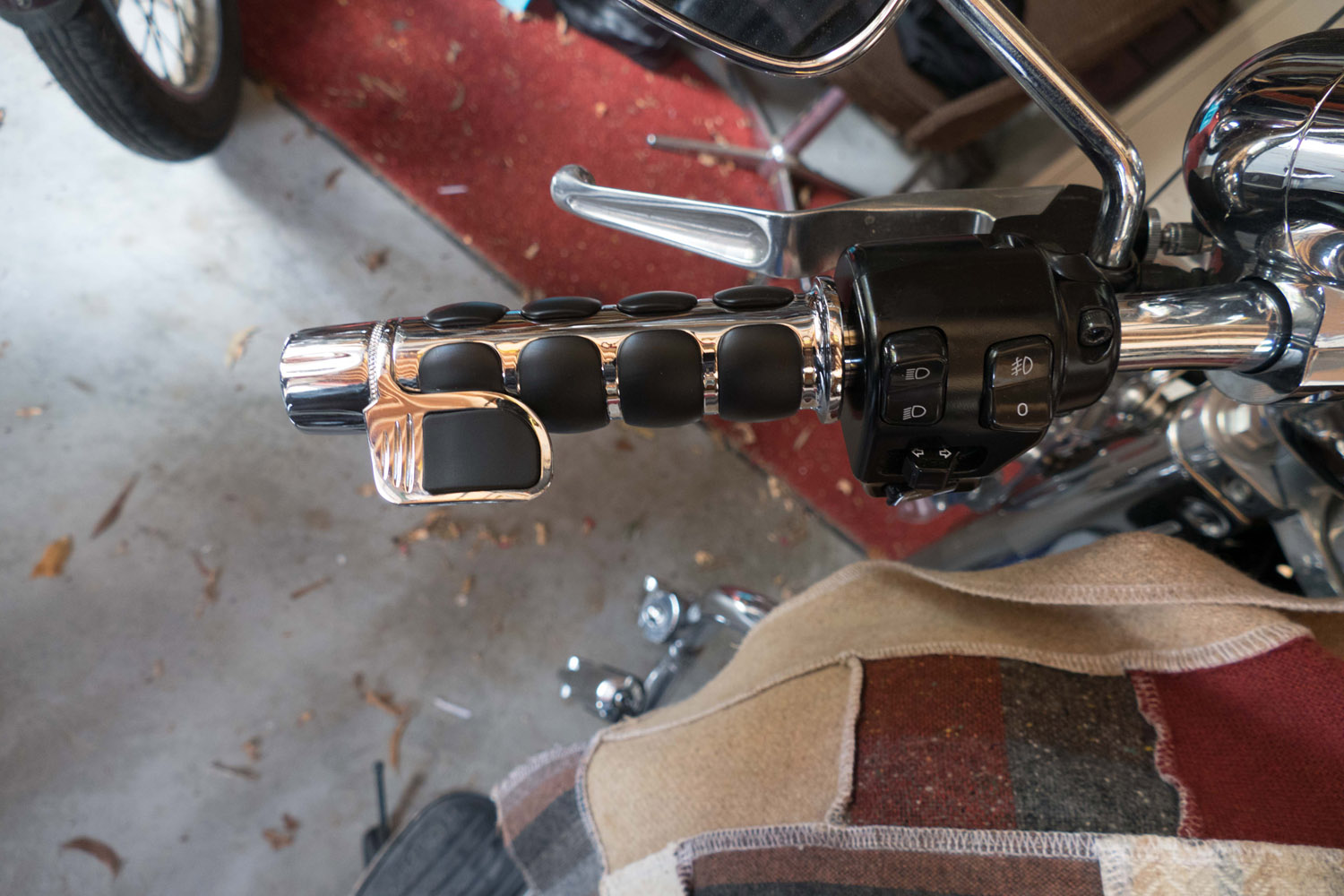 | | Posted : 15 May 2014 - 13:23 Post title : Re: Hand grip swap (Re: Chet_Manley) | | | That works. Or the Kuryakyn ISO grips have a "throttle boss" option that goes on the end of the grip when you screw in the allen key. Can't swing up on you, and the grips are pretty comfy. Same install process as I'd mentioned.